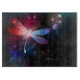 Lumineuse, volante, libellule rouge, avec des ailes transparentes et détaillées sur arrière - plan sombre, nocturne, lumineux avec plantes tropicaux et lucioles. libellule rouge.
