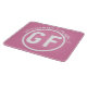 Cette planche à découper personnalisée est parfaite pour n'importe qui qui mange le gluten libre. Il comporte votre message fait sur commande au-dessus d'un logo de style de cercle de GF dans le blanc sur un fond rose. Employez le gisement de modèle pour personnaliser facilement ceci avec un message nommé ou court.