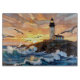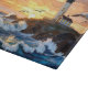 Beautiful cutting board featuring a coastal lighthouse at sunset with crashing ocean waves and flying seabirds. This artistic design adds a warm and relaxing seaside atmosphere to any kitchen.