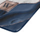 Marbre blanc élégant et agate bleu marine taillée avec parties scintillant en or rose faux se combinent dans ce design luxueux. Personnalisez-le avec votre initiale en police marine bleu serif dans un cadre rose en or faux carré brossé métal à deux bordures.