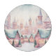 Une scène hivernale à la menthe et rose avec le marché de Noël, les châteaux et la neige!