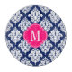 Mode et motif floral bleu-foncé foncé élégant de damassé de diamant de marine et blanc. Cadre bleu rose. Personnalisez-le avec votre monogramme, nom ou initiales. Cliquez sur dessus la "personnaliser il" bouton si vous voulez faire n'importe quels changements à la conception. Choisissez le style de police et la couleur. Motif à la mode de damassé pour les filles girly.