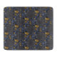 Métal liquide bleu nuit or et argent, motif abstrait fondu.