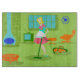 Ce Mid-Century Moderne Rétro Housewoman Cutting Board vous fera briser vos brins de perles pour accomplir les tâches les plus banales. Le design est composé d'un arrière - plan vert citron avec la silhouette bleue, d'une cheminée à cônes, d'une télévision à écran plat classique verte (avec oreilles de lapin), d'un fauteuil et d'un repose-pieds orange, d'un réveil bleu étoilé et d'un ottoman orange aux jambes tapissées. Mais le clou de la décoration est certainement la maîtresse de maison classique de la télévision, habillée d'une robe rose pâle, d'un tablier bleu turquoise et blanc et de chaussures turquoise. Ses cheveux blonds sont parfaitement flippants et sa main tient une buse à vide. Bien sûr que oui ! Que ferait-elle d'autre si elle ne rendait pas sa maison douce un peu plus douce ?
