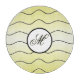 Soft butter yellow tones with modern, black abstract line art accentuate the black and white centerpiece with the personalized family / surname initial in black calligraphy. And, with the subtle matching yellow drop shadow on the initial, this is a unique 12" tempered glass cutting board that makes a wonderful and useful gift for families and new homeowners!