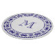 Cette jolie planche à découper présente votre monogramme en bleu roi vif dans un cadre circulaire country chic assorti bleu. Le cadre comprend une conception double coeur à l'intérieur de deux bordures en pointillés. L'image et le monogramme sont placés sur un arrière - plan blanc.