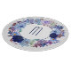 Voici une jolie planche à découper qui présente votre monogramme de style moderne en bleu foncé au centre d'une couronne florale mum bleu et violet.*Merci à LeCoq Design pour l'image florale utilisée.