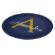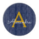 Planche à découper avec monogramme de nom en écriture simple bleu marine et or. C'est le cadeau parfait pour la remise des diplômes, l'anniversaire, le mariage, la douche de mariée, l'anniversaire de mariage, la douche de bébé ou l'enterrement de vie de jeune fille pour quelqu'un qui aime le luxe clinquant et les styles chics.
