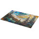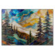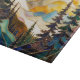 Add an artistic and modern touch to your kitchen with this abstract stained glass style mountain landscape cutting board. Featuring flowing layers of teal, gold, and warm tones with elegant pine trees, this design creates a unique and calming nature-inspired composition.