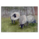 Cette planche à découper présente un imprimé aquarelle de moutons pâturés de l'artiste D. Carrasco.