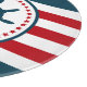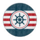 Design nautique avec décoration de voilier en forme ronde avec étoiles sur rouge, bleu et blanc rayé arrière - plan