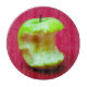 Photo d'une grosse pomme verte against red background. The big bite has been taken out of the apple.