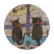 Ces deux chats noirs mignons ont patiemment été assis sur le rebord de la fenêtre pour que Père Noël arrive. C'est la veille de Noël et la neige tombe fort. La maison est décorée de cloches saintes et saisonnières pour les vacances. Ensuite, la patience du chat est récompensée en repérant Père Noël dans son traîneau à rennes volant à travers le visage ou la lune brillante. C'est une aquarelle de Noël colorée et festive qui ajoutera une note d'amusement et de luminosité à vos décorations de vacances.