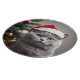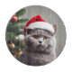 Chateau bleu/gris mignon britannique en short-air portant un chapeau de Père Noël.