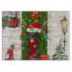 Great Dane Dog Noël assis à l'extérieur de la maison décorée avec la couronne de Noël, le sapin de Noël est une idée cadeau de Noël parfait pour les amoureux de les chiens.