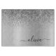 Planche à découper monogramme en métal argenté paillettes métallisées brillantes. C'est le cadeau parfait pour la remise des diplômes, l'anniversaire, le mariage, la douche de mariée, l'anniversaire de mariage, la baby shower ou l'enterrement de vie de jeune fille pour quelqu'un qui aime le luxe glamour et les styles chics.