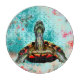 Une représentation dessinée à la main d'une tortue avec un arrière - plan abstrait. Couleurs utilisées : rouge, bleu, turquoise, vert, jaune, violet.