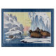 Une belle gravure colorée, vers 1860, d'ours polaires, de morses et de phoques sur la glace arctique, avec le soleil bas à l'horizon en arrière - plan.