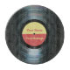 Une planche à découper en verre sur le thème de la musique. Il ressemble à un disque vinyle ou phonographique de l'époque du lecteur de disques.  La surface du disque est noire avec la lumière réfléchie de la rainure spirale et un étiquette central en jaune et rouge entourant le trou sur lequel le disque tournerait.  Personnalisez avec votre nom ou votre texte ou message au-dessus et au-dessous de la zone étiquette. Veuillez noter qu'il s'agit d'une image imprimée et qu'il n'y a pas de trou au centre.