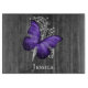 Créez un cadeau unique avec un Papillon Rustique violet personnalisé en verre de la planche à découper. Le design de la planche à découper comprend un papillon contre une vigne à feuilles blanches et un arrière - plan en bois gris foncé avec un endroit à personnaliser avec votre nom. Autres articles disponibles avec cette conception aussi. Contactez-moi directement pour obtenir de l'aide sur la personnalisation.