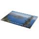 Écrasez et découpez votre nourriture en toute sécurité avec cette planche de coupe en verre de 15 x 11 pouces qui présente une photo pittoresque des eaux bleu saphir et de l'île Wizard dans le parc national Crater Lake, en Oregon.