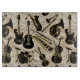 Tous les membres du groupe sont venus jouer sur ce design musical amusant qui présente une variété d'instruments sur une feuille de musique vintage, collage arrière - plan. La palette tendance noir et or fait une planche à découper en verre qui attire l'attention. Les instruments présentés sont : guitare acoustique et électrique, saxophone, clarinette, trombone, trompette, corne française, flûte, violon, violoncelle et batterie. Recherchez ID481 pour voir d'autres choix de couleurs et produits avec ce motif.