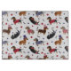 Dachshunds patriotiques habillés en rouge blanc et bleu avec étoiles, rayures et os de chien sur un arrière - plan blanc.