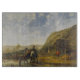 Conseil décoratif de taille du verre 15" x11" avec la peinture "paysage de rivière avec des cavaliers" par l'artiste principal néerlandais célèbre Aelbert Cuyp.