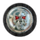 Design cool, dynamique et expressif avec reflets métalliques noirs et argentés.Photographie et élaboration numérique d'un impressionnant crâne chromé rond.