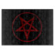 Pentagramme rouge, inversé, texturé en cercle, sur arrière - plan noir. Symbole occulte 666