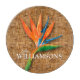Personalized with your name and a beautiful bird of paradise on a woven wicker print pattern, this round glass cutting board makes a stylish addition to your kitchen decor. MATCHING items in our store.