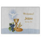 Quel merveilleux cadeau de félicitations, souvenir, cadeau et fête incontournable de RCIA! Une belle illustration de symboles sacramentels, de raisins, de pain, de blé, d'un chalice et d'une colombe blanche qui représente l'Esprit Saint. Il faut féliciter quelqu'un de spécial pour son initiation.