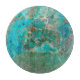 Passez et découpez votre nourriture en toute sécurité, ou utilisez comme planche de charcuterie avec cette planche ronde en verre qui présente une image de la couleur bleu turquoise de la pierre minérale de Chrysocolla. Veuillez noter qu'il n'y a pas de véritable pierre dans cet article.