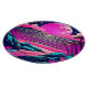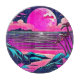 OEuvre d'art de néon animée représentant une plage tropicale sous une immense lune rose, avec des palmiers, des nuages et un océan calme (Ce design fait d'IA). Commandez dès aujourd'hui et offrez-vous la joie du shopping !