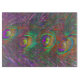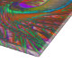 Cette magnifique planche à découper en verre présente une photographie festive amusante de plumes de paon prises à l'aide de la macro photographie. Des techniques de coloration artificielle ont été utilisées pour mettre l'accent sur les détails. Le résultat est un effet tinsel violet avec les oeillères montrant des nuances de rouge et de vert.