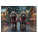 This festive design captures the joyful spirit of the holiday season, featuring an adorable dogs.Nestled in a winter wonderland, complete with a decorated Christmas tree, and beautifully wrapped presents. Snowflakes gently fall, adding a magical touch to the scene, while the vibrant colors of the holiday decorations create a warm and cheerful atmosphere.