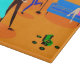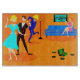 Cette Retro Cartoon Cocktail Party Cutting Board n'a pas d'os introverti dans son corps! Le design moderne du milieu du siècle présente un dessin animé animé animé d'un salon et un cocktail animé. Il y a un beau couple sur la piste de danse. La femme blonde en robe turquoise et son escorte haute, sombre et belle dansent le cha-cha. Au sol, un lecteur de disques verts est entouré de disques vinyles. Contre le mur du fond, une belle rousse est assise sur un canapé bleu. Elle porte une robe rose vif. Son seul accessoire est le martini verre dans sa main. Sur son côté se trouve une lampe de sol moins l'ombre. Où est l'ombre ? C'est sur la tête d'un homme tipsy en costume bleu qui est clairement la vie de la fête. Il tient aussi un martini. Celui qui décorait la chambre n'avait pas peur de la couleur. Mur en brique orange et sol orange. Sur le mur derrière le canapé, un tableau turquoise et turquoise représentant un globe à cadre noir.