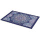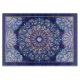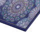 Dessin d'un vitrail d'une ancienne église européenne : une fenêtre rose, avec des touches de couleurs variées, dont des tons bleus, sur un arrière - plan bleu marine. Inposition de strass bleus. Ce motif est également disponible en rouge cardinal dans mes collections "cardinal rouge rosace".