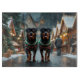 This festive design captures the joyful spirit of the holiday season, featuring an adorable dogs.Nestled in a winter wonderland, complete with a decorated Christmas tree, and beautifully wrapped presents. Snowflakes gently fall, adding a magical touch to the scene, while the vibrant colors of the holiday decorations create a warm and cheerful atmosphere.