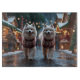 This festive design captures the joyful spirit of the holiday season, featuring an adorable dogs.Nestled in a winter wonderland, complete with a decorated Christmas tree, and beautifully wrapped presents. Snowflakes gently fall, adding a magical touch to the scene, while the vibrant colors of the holiday decorations create a warm and cheerful atmosphere.