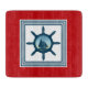 Design à thème nautique avec décoration de scène de voile en carrés rayés sur arrière - plan rouge