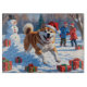 Une illustration réconfortante des fêtes de fin d'année mettant en vedette un chien joyeux jouant dans la neige, portant un chapeau de Père Noël et entouré de boîtes de cadeaux colorées. En arrière-plan, des enfants construisent un bonhomme de neige à côté d'un sapin de Noël enneigé, créant un monde hivernal joyeux. Parfait pour répandre la joie des fêtes et capturer la magie de Noël.