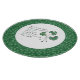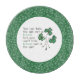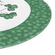 Une table ronde chic, avec des feuilles Shamrocks verts et un dicton gallois en écritures celtiques, sur un arrière - plan blanc, entourée d'un motif Shamrock chic. Une partie de la collection "Shamrocks" posh & peintre.