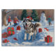 Un Husky sibérien plein coeur parcourt joyeusement la scène hivernale enneigée, portant un casquette de Noël rouge festif. Ce design animé met en valeur l’épais double manteau de la race, ses yeux saisissants et son esprit aventureux tout en captant la chaleur et la joie de la saison des fêtes. Un moment d'hiver plein de réjouissances festives.