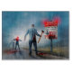SlipperyJoe's heureux Halloween brillant yeux zombies foyer de quarantaine mâle figure de survivant d'avant-plan infection gaz masque avions sol taches de sang mystérieuses figures monde post-apocalyptique zombie infecté avec marteau de nuit pour combat artistique sombre ciel désoler paysage LGBTQIA dons gay pride