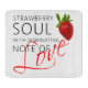 Fraise rouge aux feuilles verts et texte âme fraise avec une note d'amour dominante. Un des tee-shirts, imprimés et cadeaux pour tous. Thème d'amour et de romance. produits et souvenirs au format carré.