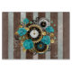 Planche À Découper Steampunk Clock and Turquoise Roses on Striped