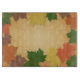 Table de coupe en verre à thème d'automne avec cadre de feuilles d'automne illustrées.