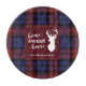 Cute home sweet home Noël famille planche à découper vous pouvez facilement customiser en cliquant sur le bouton "Personnaliser", Avec silhouette de cerf et clan MacLachlan tartan en rouge, et chèque violet. Parfait pour vos nuits douillettes pendant les vacances. Fait un grand cadeau