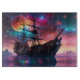 Des nébuleuses colorées dans le ciel sont une jolie toile de fond pour ce navire Spatial pirate qui a atterri sur une autre planète avec beaucoup de lunes IA Art par minx267